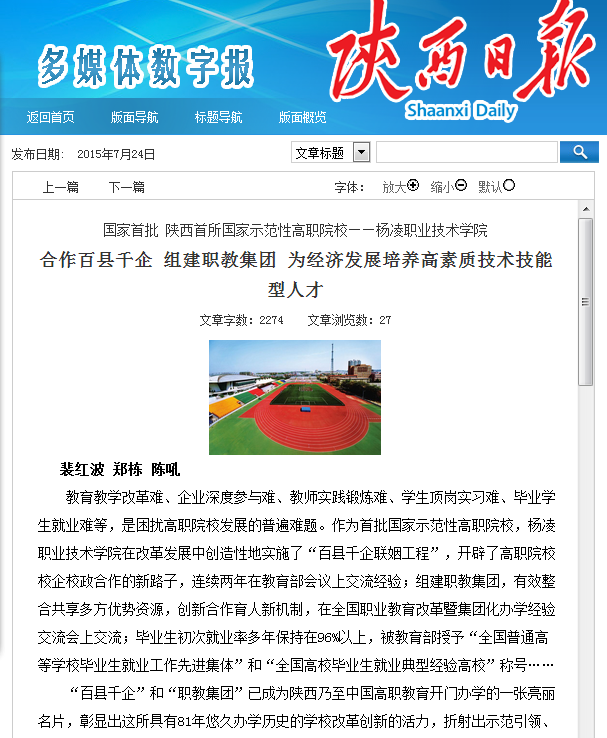 近年来,杨凌职业技术学院将百县千企联姻工程和集团化办学紧密结合,深度融合,呈现出相辅相成、相互促进、相得益彰的发展态势。