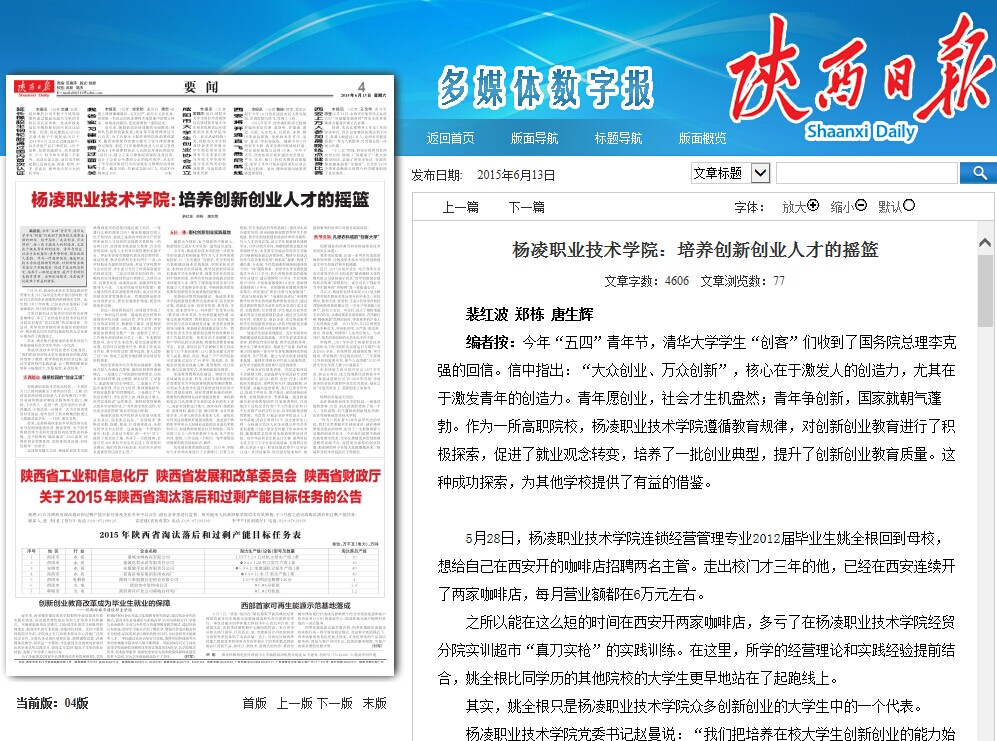 杨凌职业技术学院:培养创新创业人才的摇篮