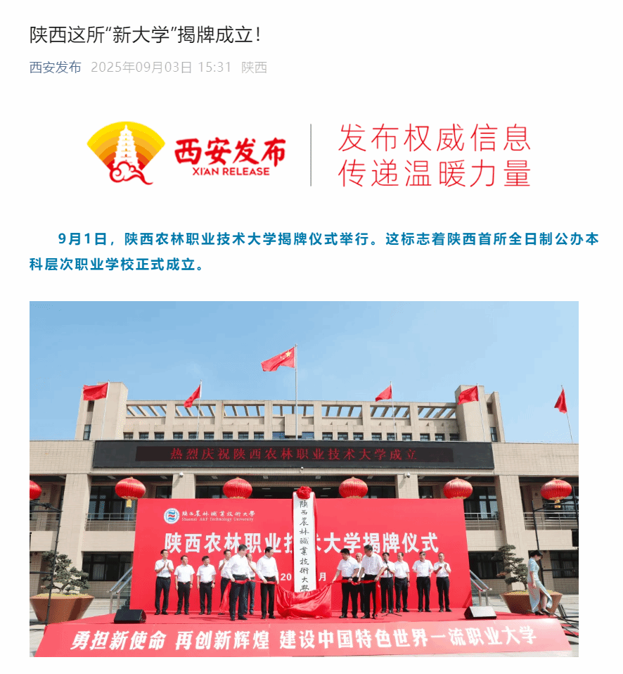 9月1日,电子游艺官网揭牌仪式举行。这标志着陕西首所全日制公办本科层次职业学校正式成立。