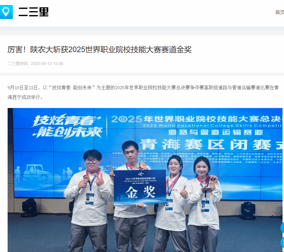 9月10日至13日,以“技炫青春 能创未来”为主题的2025年世界职业院校技能大赛总决赛争夺赛高职组道路与管道运输赛道比赛在青海西宁成功举行。