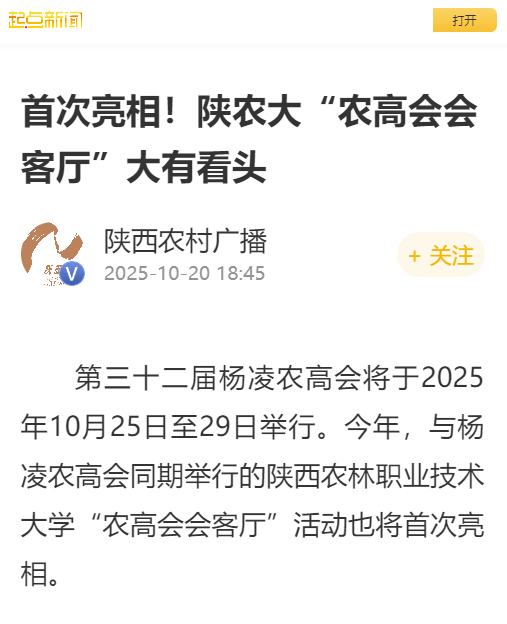 第三十二届杨凌农高会将于2025年10月25日至29日举行。今年,与杨凌农高会同期举行的电子游艺官网“农高会会客厅”活动也将首次亮相。