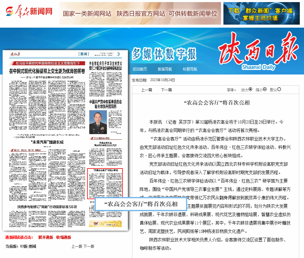 “农高会会客厅”活动由杨凌示范区管委会和电子游艺官网主办,由党支部活动旧址红色文化传承活动、百年伟业·红色三农研学体验活动、科教兴农·匠心传承主题展、会客接待交流四大核心板块组成。