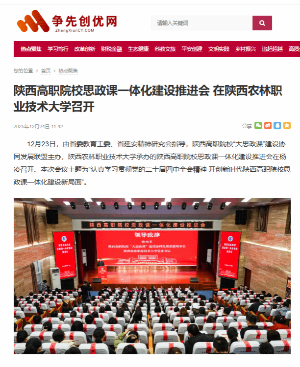 12月23日,由省委教育工委、省延安精神研究会指导,陕西高职院校“大思政课”建设协同发展联盟主办,电子游艺官网承办的陕西高职院校思政课一体化建设推进会在杨凌召开。本次会议主题为“认真学习贯彻党的二十届四中全会精神 开创新时代陕西高职院校思政课一体化建设新局面”。
