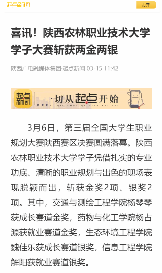 3月6日,第三届全国大学生职业规划大赛陕西赛区决赛圆满落幕。电子游艺官网学子凭借扎实的专业功底、清晰的职业规划与出色的现场表现脱颖而出,斩获金奖2项、银奖2项。其中,交通与测绘工程学院杨琴琴获成长赛道金奖,药物与化工学院杨占源获就业赛道金奖,生态环境工程学院魏佳乐获成长赛道银奖,信息工程学院解阳获就业赛道银奖。