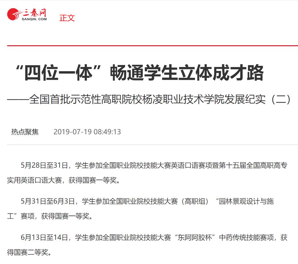 从全国职业院校技能大赛传来的一个个喜讯,为杨凌职业技术学院(以下简称杨凌职院)师生送来了一股股暖流。近年来,杨凌职院在全院深入实施以学分为导向的“通识教育+专业教育+个性发展教育+创新创业教育”四位一体人才培养方案,培养了一批思想品德好、专业知识精、实践能力强和创新意识浓的学生,学院的知名度和美誉度不断提升。