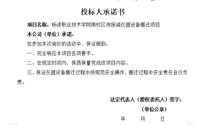 附:1. 杨凌职业技术学院南校区待报减仪器设备搬迁项目报价单。