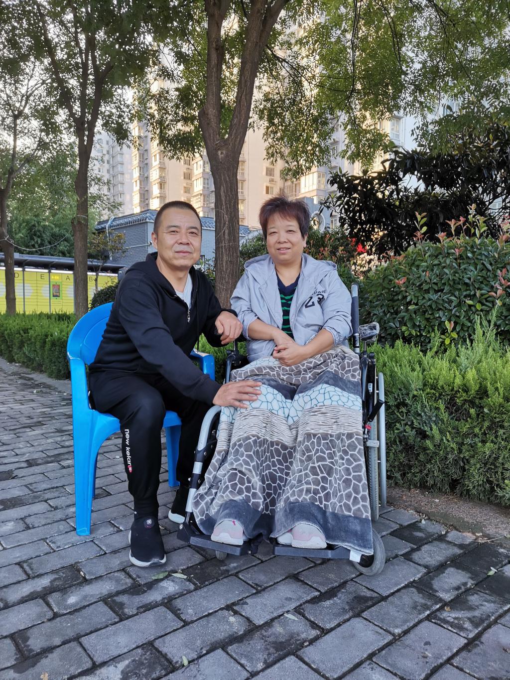 每周末,郑党卫还会用轮椅推着妻子到外面散散心。但每一次出门都是一次艰难的过程,他要先将轮椅及出门所需物品拿到楼下,由于妻子常年瘫痪在床缺乏运动身体发福严重,他把妻子背到楼下已经汗流浃背,但他从不喊苦叫累。他常说:“只要我老婆心情舒畅,能尽快康复,我再苦再累都愿意。”