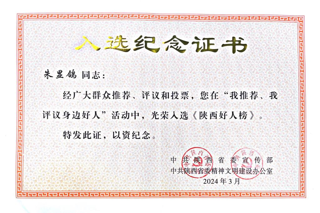 杨凌职院朱显鸽老师荣登孝老爱亲类陕西好人榜
