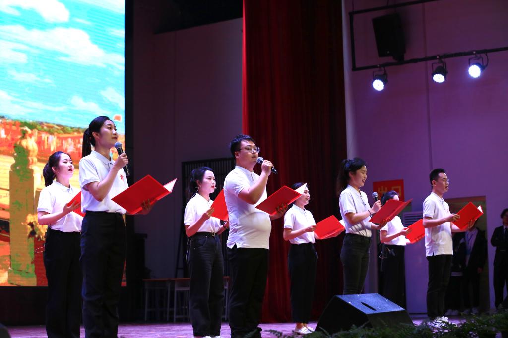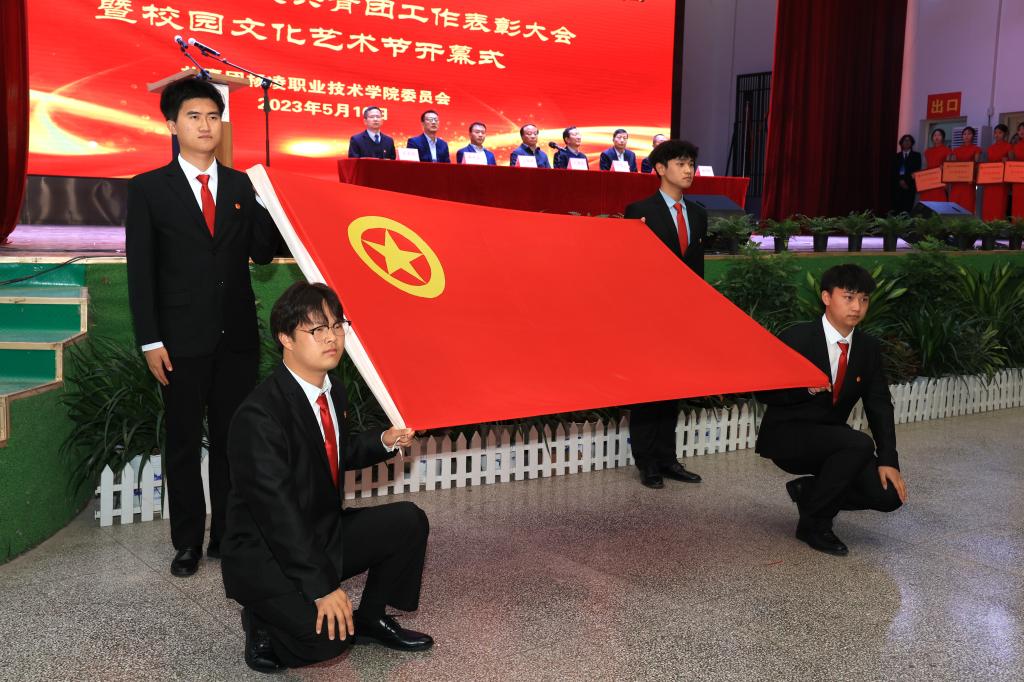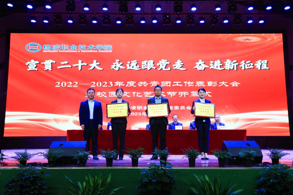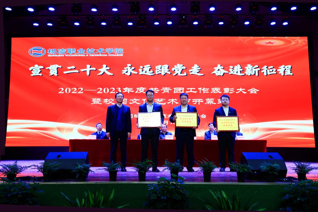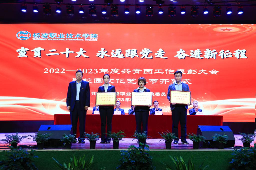 大会分为表彰大会、文艺汇演两个阶段。在表彰大会上,张朝晖宣读了《共青团杨凌职业技术学院委员会关于表彰2022-2023学年度先进集体及先进个人的决定》,学校领导为五四红旗团委、五四红旗团支部、优秀共青团干部、优秀共青团员等先进集体和个人颁奖。35名新发展团员代表进行了入团宣誓仪式。