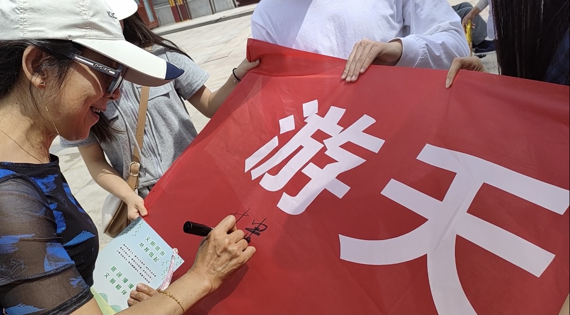 通过发放文明旅游倡议书签署文明旅游承诺书,呼吁广大市民与游客文明出游,自觉遵守《中国公民国内旅游文明行为公约》,从小处着眼、从小事做起,以更高的标准践行文明旅游要求。